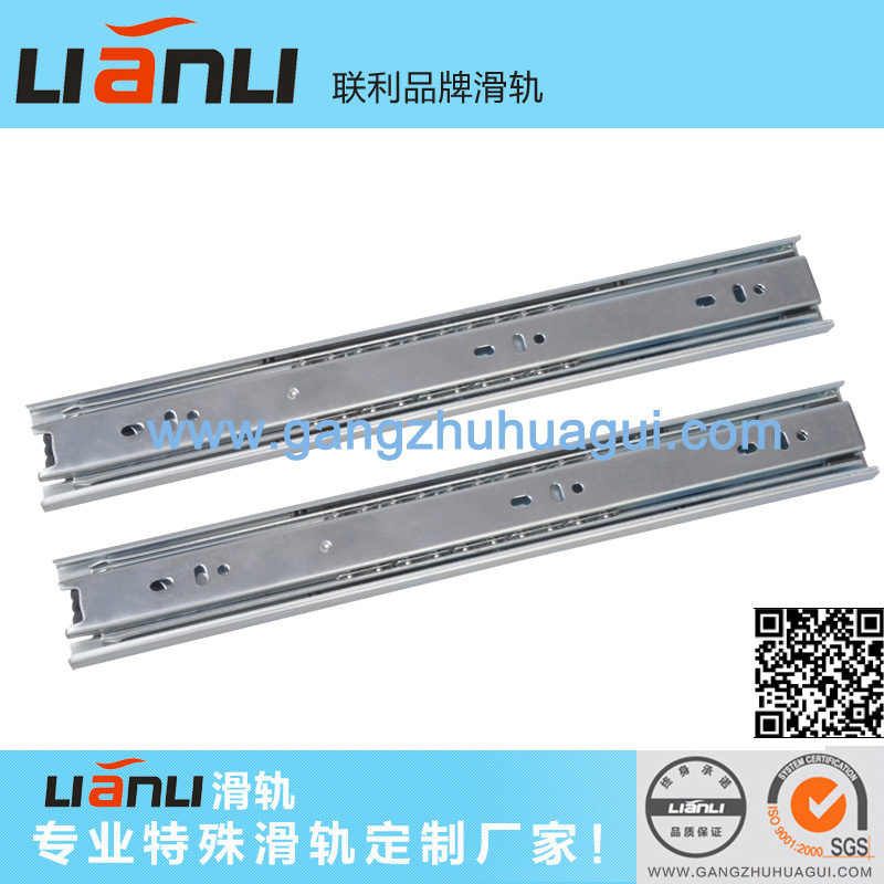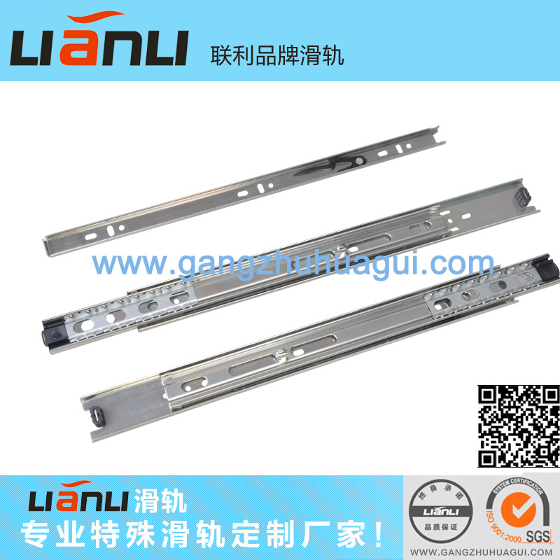 時(shí)間: 2014-08-11 17:11:32 來(lái)源: 東莞市聯(lián)利滑軌制造有限公司最近一周,我們客服人員接到很多關(guān)于三節(jié)滑軌承重問題的詢盤,今天,聯(lián)利小編來(lái)為大家解決這個(gè)問題。三節(jié)滑軌的承重要根據(jù)滑軌規(guī)格和厚度來(lái)衡量的,我司普通三節(jié)滑軌(不包括重型滑軌)的規(guī)格有36mm寬和45mm寬。下面給大家介紹這兩款三節(jié)滑軌的承重。